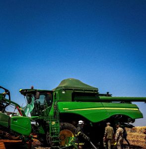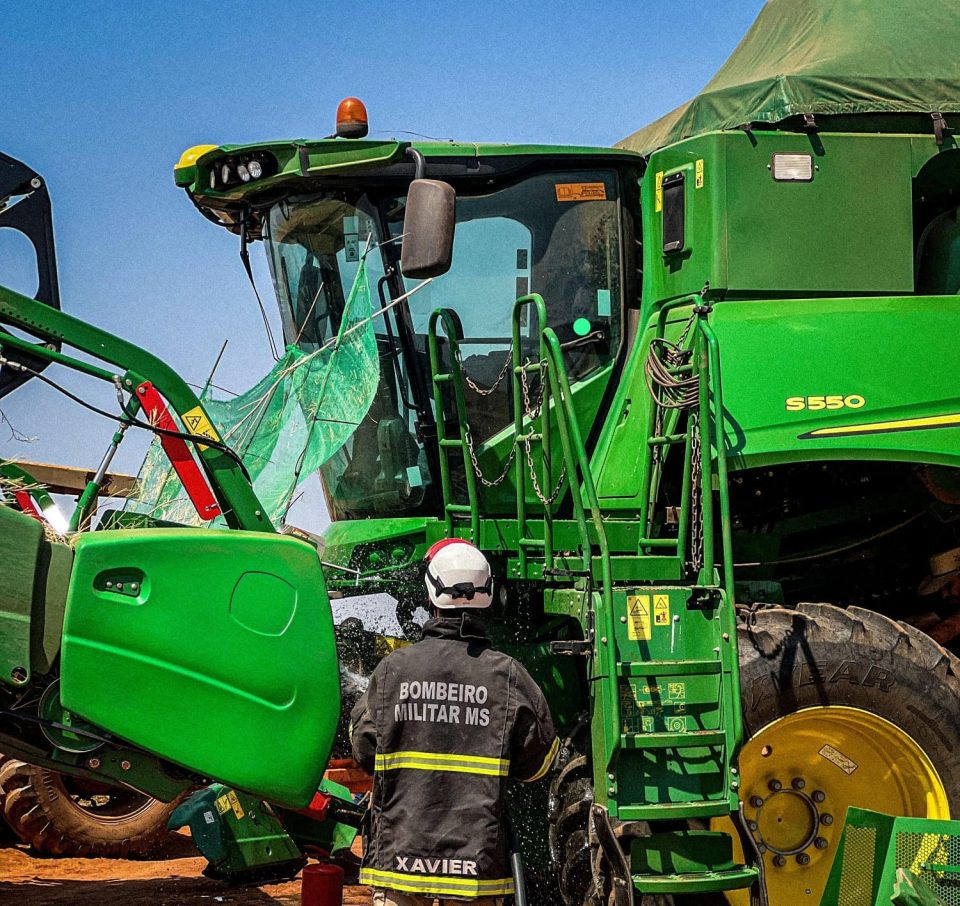 Um princípio de incêndio em uma colheitadeira John Deere mobilizou o Corpo de Bombeiros no final da Avenida 33, na manhã de hoje. O incidente ocorreu enquanto a máquina realizava trabalhos de colheita.
