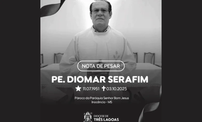 Faleceu nesta sexta-feira (3), na Santa Casa de Paranaíba (MS), o Padre Diomar Serafin, pároco da Paróquia Senhor Bom Jesus, em Inocência, aos 74 anos.