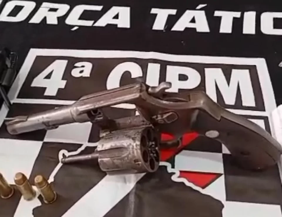 Durante a abordagem, foram encontrados no interior da residência um revólver calibre .38 com seis munições, porções de substância análoga à cocaína, uma balança de precisão e rádios comunicadores.