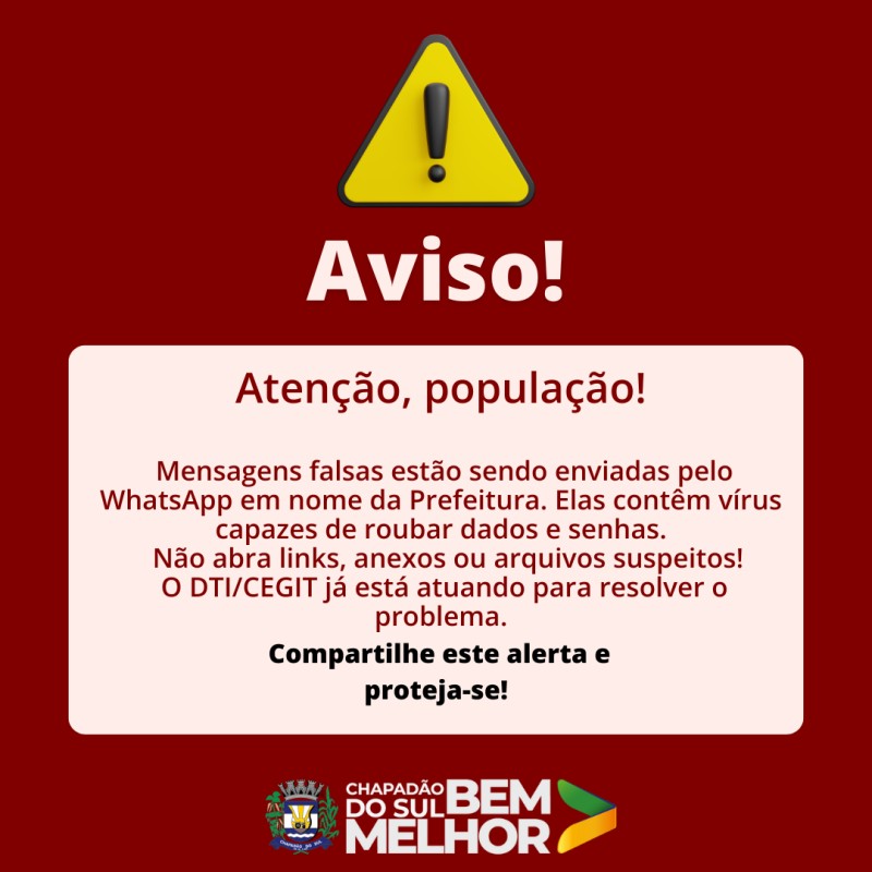 A equipe do DTI/CEGIT já está trabalhando para restabelecer a segurança dos sistemas municipais e orienta que todos redobrem a atenção para evitar novos casos.