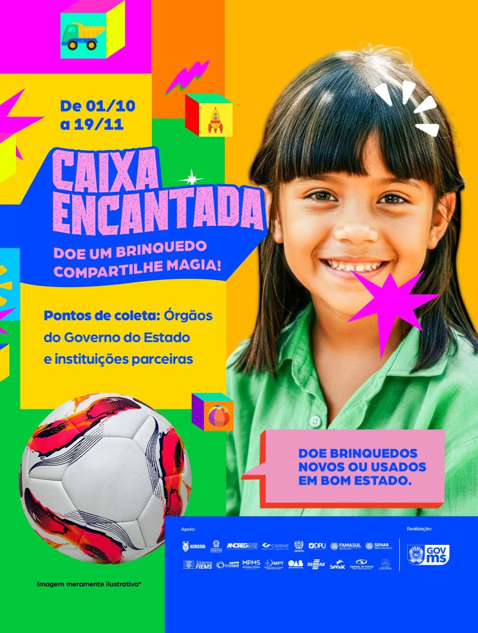 Campanha de arrecadação de brinquedos, promovida pela PMMS, o objetivo é proporcionar um Natal mais feliz para milhares de crianças, dessa forma, todas as unidades da 4ªCIPM já estão recebendo a doação de brinquedos, com duração até 19 de novembro de 2025.