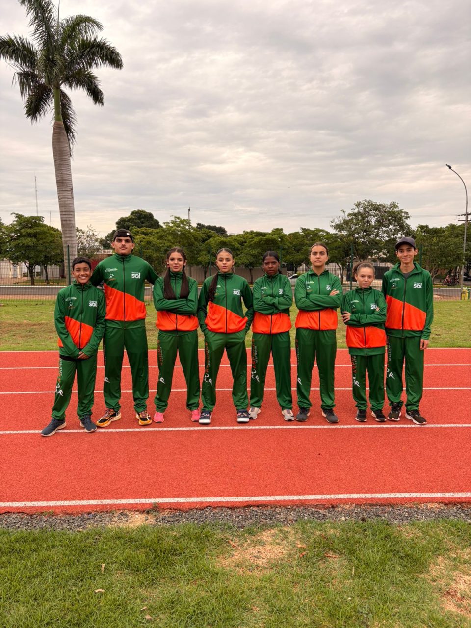 A entrega, realizada na Pista de Atletismo Municipal, contou com a presença do proprietário da empresa de produtos de limpeza junto ao pai de uma das atletas, Rodrigo, do secretário interino Wesley Kangere e do vereador Emerson, que acompanharam de perto o momento de valorização dos jovens esportistas.