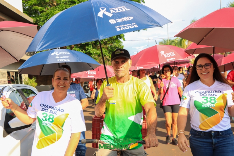 Homens e mulheres que participaram das ações de prevenção ao longo do mês receberam um voucher, onde puderam retirar sombrinhas personalizadas, que foram entregues na praça de eventos na tarde de hoje. Antes da caminhada, a equipe da Secretaria de Esporte, Juventude e Lazer comandou um animado alongamento coletivo, colocando todos no ritmo para o trajeto que segue a Praça de Eventos até o Paço Municipal, passando pelo Hospital Municipal.